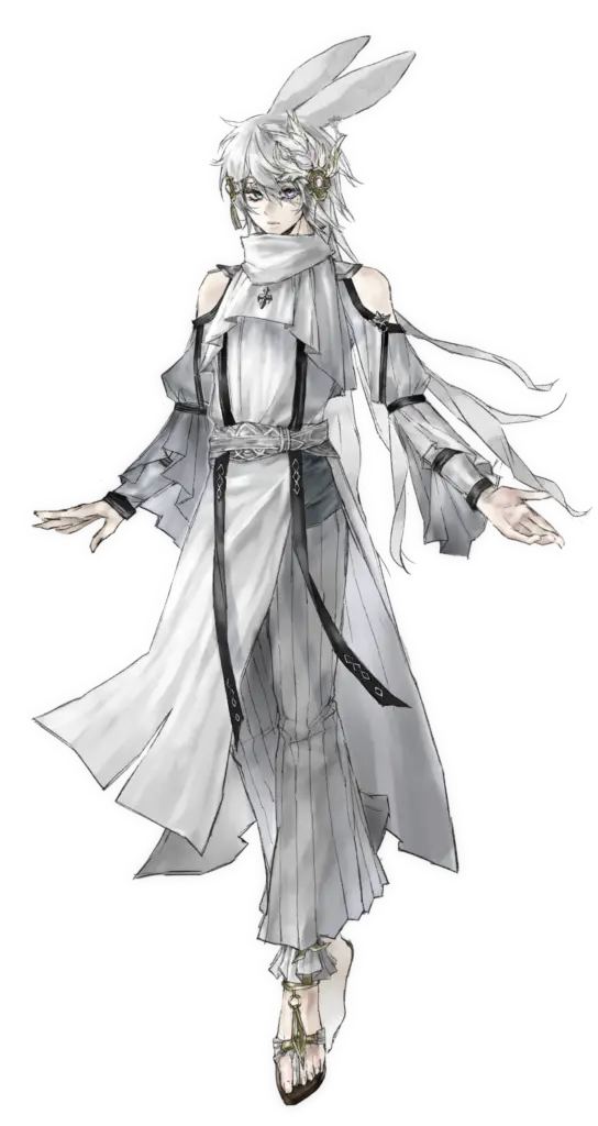 作为幻术师净化淤积的各属性以太时,因为元灵的抱怨声太大而不耐烦地抖了抖耳朵,就此被艾·斯密·雅恩发现能听见元灵的声音。被三位幻术皇邀请加入幻术师行会时,以“我已经注册了冒险者身份”的理由拒绝了,但还是以自由白魔法师的身份协助镇抚了大元灵。